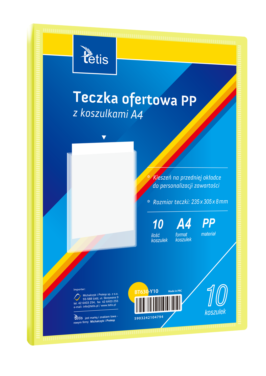 Teczka ofertowa PP z koszulkami. Posiada grzbiet i kieszeń opisową na przedniej okładce, format A4. Opakowanie: folia 1 szt.