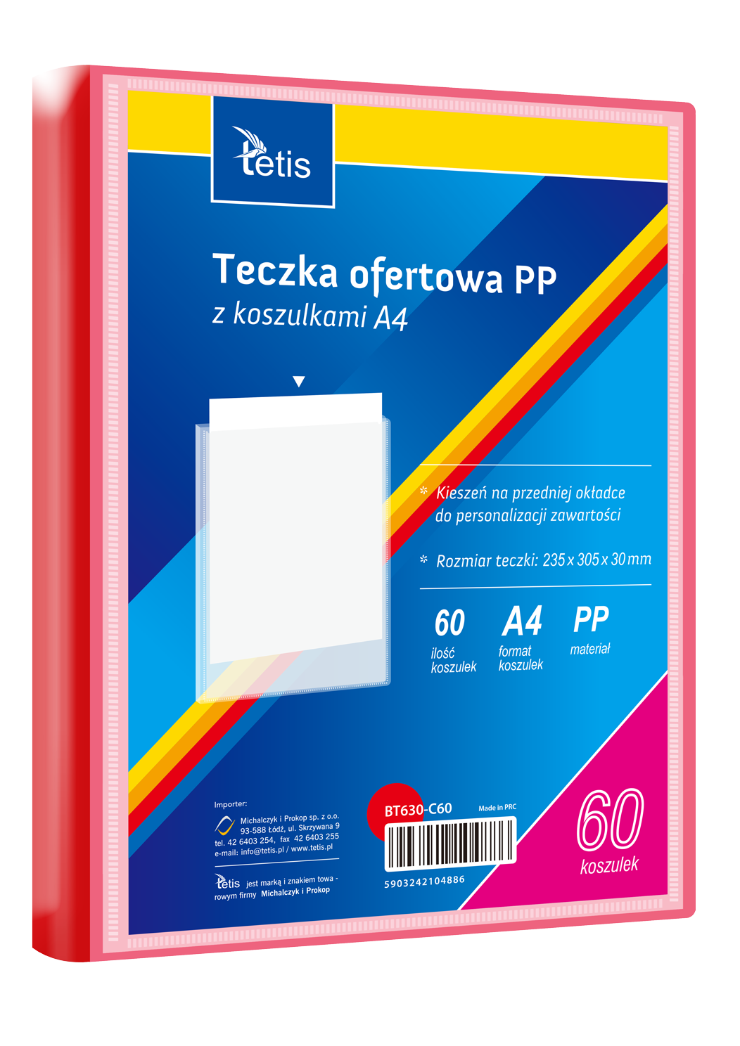 Teczka ofertowa PP z koszulkami. Posiada grzbiet i kieszeń opisową na przedniej okładce, format A4. Wymiary teczki: 305 x 235 mm. Opakowanie: folia 1 szt.