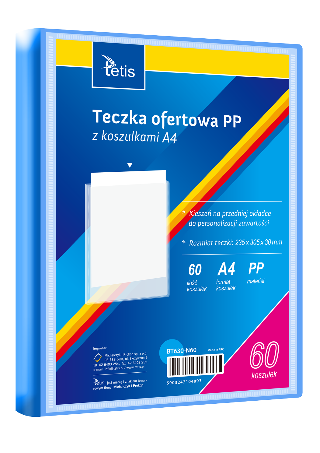 Teczka ofertowa PP z koszulkami. Posiada grzbiet i kieszeń opisową na przedniej okładce, format A4. Wymiary teczki: 305 x 235 mm. Opakowanie: folia 1 szt.
