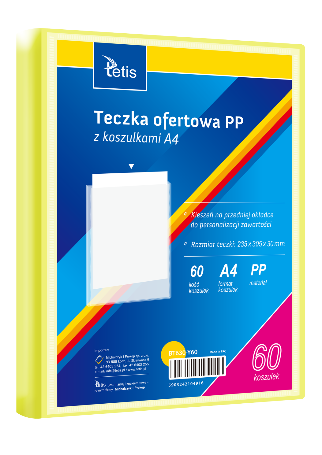 Teczka ofertowa PP z koszulkami. Posiada grzbiet i kieszeń opisową na przedniej okładce, format A4. Wymiary teczki: 305 x 235 mm. Opakowanie: folia 1 szt.