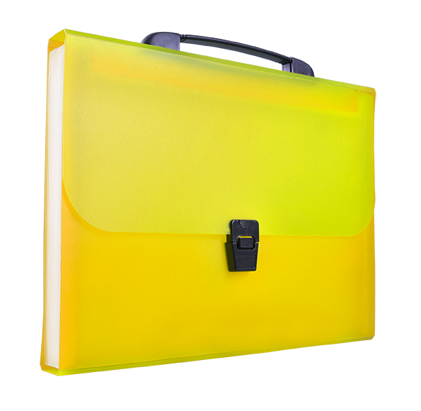 Teczka harmonijkowa PP z rączką, mieści format A4, posiada 13 przegród. Wymiary teczki: 330 x 265 x 33 mm, grubość tworzywa PP: 0,60 mm. Opakowanie: folia 1 szt.