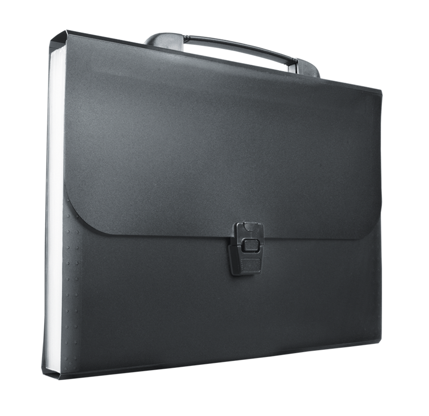 Teczka harmonijkowa PP z rączką, mieści format A4, posiada 13 przegród. Wymiary teczki: 330 x 265 x 33 mm, grubość tworzywa PP: 0,60 mm. Opakowanie: folia 1 szt.