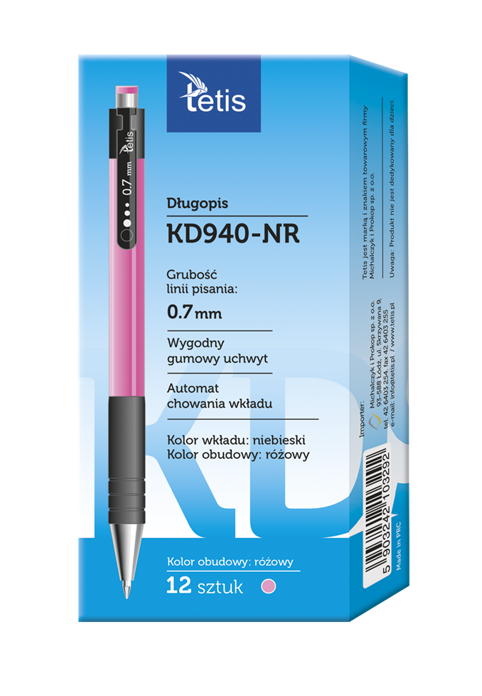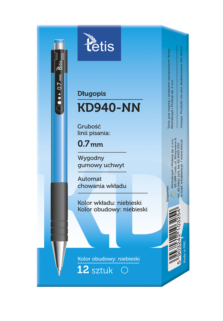 Długopis w obudowie z tworzywa sztucznego. Nadaje się pod nadruk metodą tampodruku. Grubość linii: 0,7 mm. Opakowanie: display 20 sztuk/pudełko 12 sztuk.
