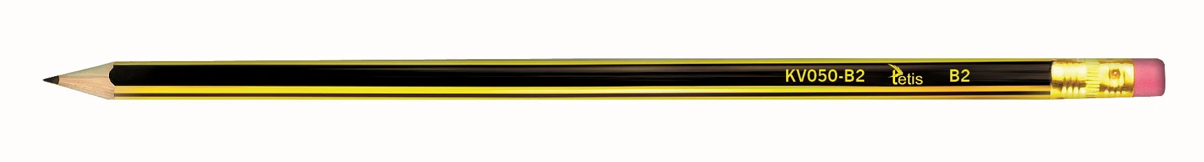 Tradycyjny, drewniany ołówek z gumką. Heksagonalny kształt. Grafit odporny na złamanie. Opakowanie: pudełko 12 sztuk