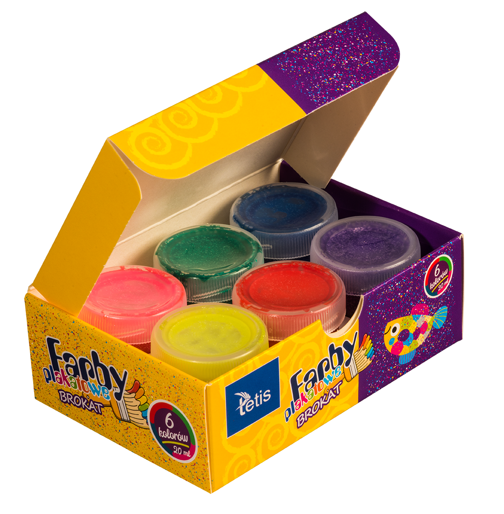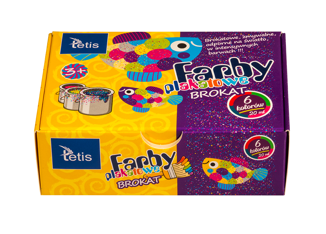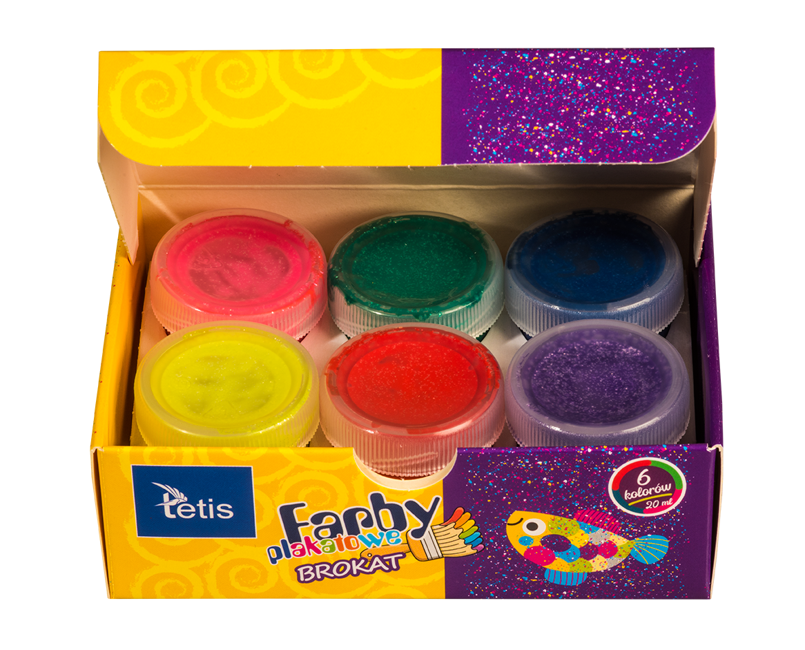 Farby plakatowe brokatowe, odporne na światło, zmywalne.