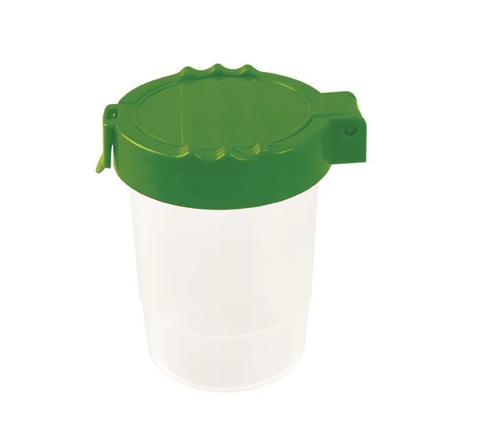 Zamykany pojemnik do płukania pędzli. Rozmiar: 6,5 x 8,5 x 9 cm. Dostępny w trzech kolorach (niebieski, czerwony, zielony). Opakowanie: folia 1 szt.