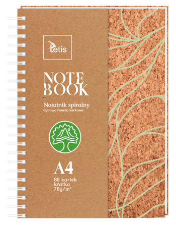 Kołonotatnik w twardej korkowej oprawie. Gramatura papieru: 70 g/m2