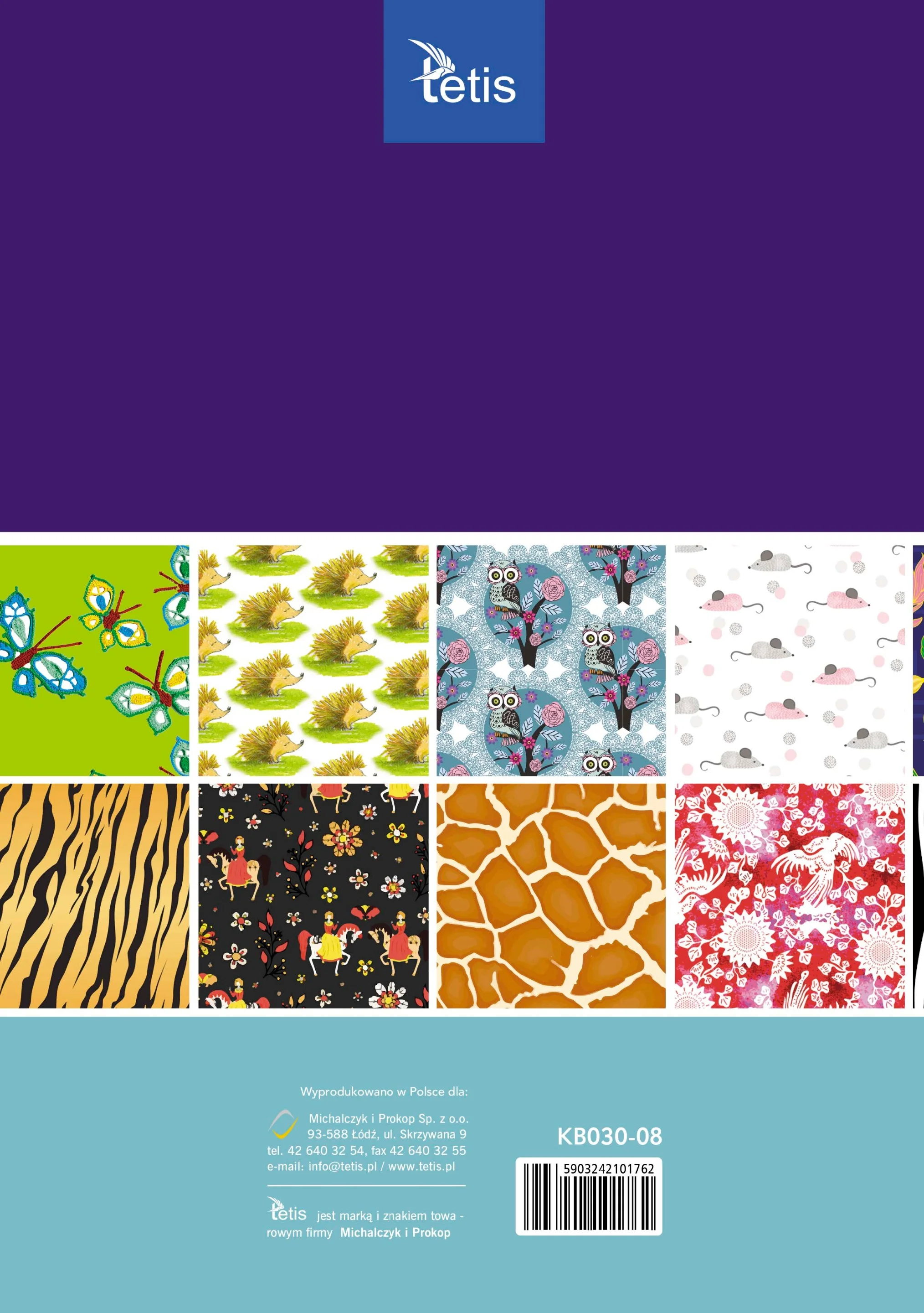 Zestaw 16 jednostronnie zadrukowanych arkuszy ozdobnych. Oprawa zeszytowa. Arkusze posiadają mikroperforację ułatwiającą odrywanie. Papiery ozdobne idealne do prac twórczych, zaproszeń, kartek okolicznościowych, laurek czy zdobienia pudełek prezentowych. Wymiar arkusza 205x292mm. Gramatura 100g/m2.