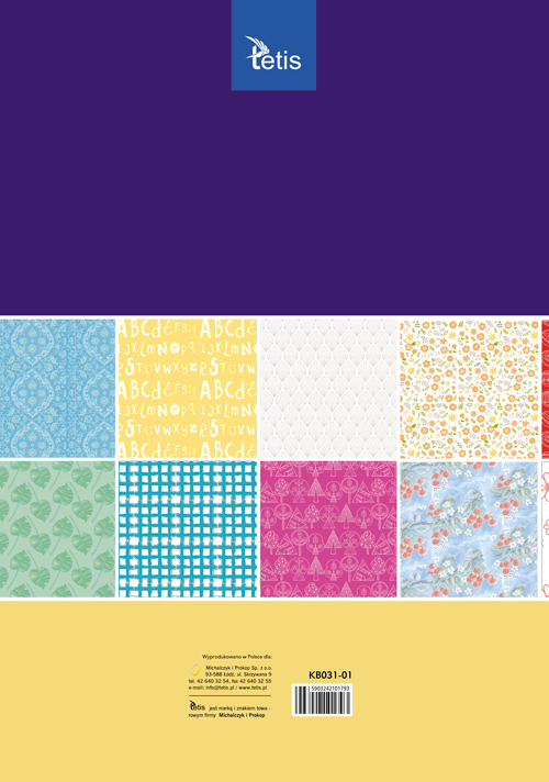 Zestaw 16 jednostronnie zadrukowanych arkuszy ozdobnych. Oprawa zeszytowa. Arkusze posiadają mikroperforację ułatwiającą odrywanie. Papiery ozdobne idealne do prac twórczych, zaproszeń, kartek okolicznościowych, laurek czy zdobienia pudełek prezentowych. Wymiar arkusza 420x295mm. Gramatura 100g/m2.
