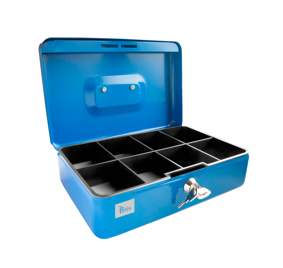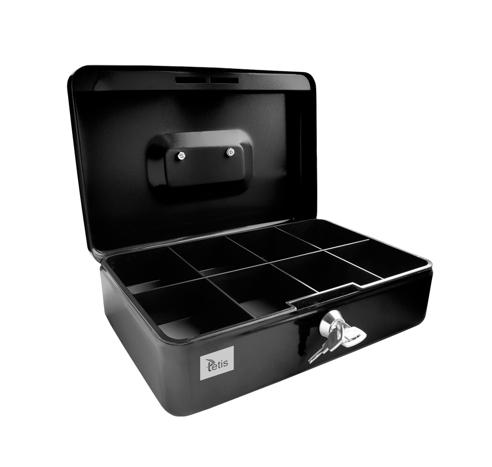 Kasetka metalowa w rozmiarze 8” ze składanym uchwytem do przenoszenia. Lakierowana obudowa. Jest wyposażona w tackę z ośmioma przegródkami. Posiada dodatkowy schowek pod wyjmowaną tacką. Zamknięcie na zamek bezpieczeństwa z dwoma kluczami. Wymiary: 194x144x75mm. Opakowanie: pudełko.
