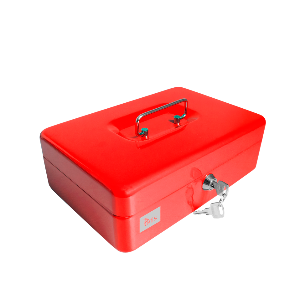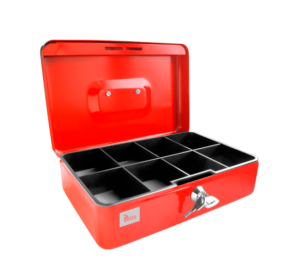 Kasetka metalowa, czerwona w rozmiarze 8” ze składanym uchwytem do przenoszenia. Lakierowana obudowa. Jest wyposażona w tackę z ośmioma przegródkami. Posiada dodatkowy schowek pod wyjmowaną tacką. Zamknięcie na zamek bezpieczeństwa z dwoma kluczami. Wymiary: 194x144x75mm. Opakowanie: pudełko.