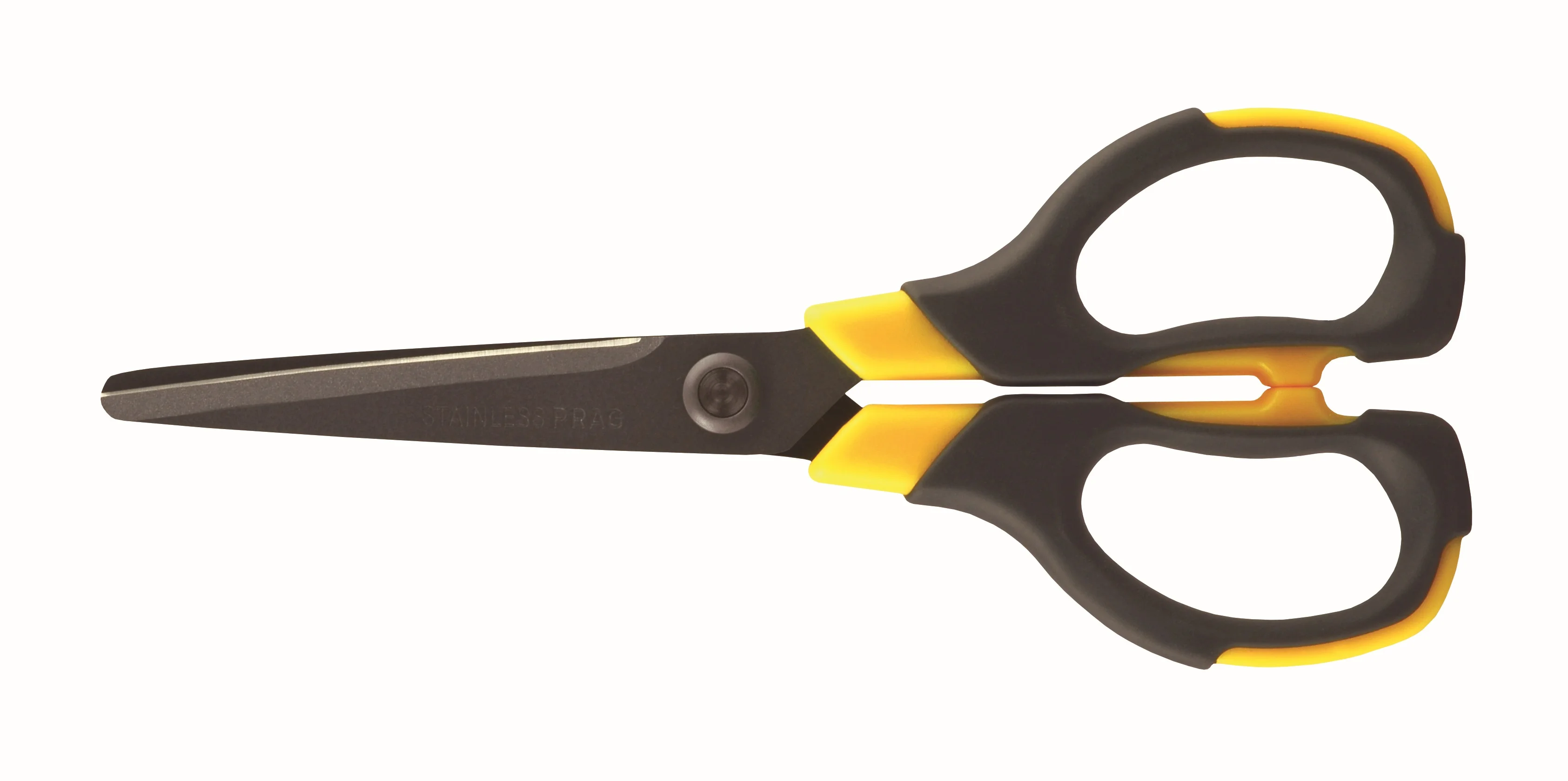 Nożyczki wykonane ze stali nierdzewnej. Ostrze pokryte fluorem odporne na przywieranie kleju oraz taśmy klejącej. Idealnie wyprofilowany, miękki uchwyt w kolorze czarno-żółtym sprawia, że nożyczki mogą być używane zarówno przez osoby praworęczne jak i leworęczne. Opakowanie: blister