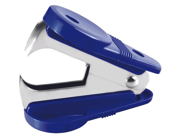 Rozszywacz w obudowie z tworzywa sztucznego w kolorze niebieskim, części mechaniczne metalowe. Dopasowany do zszywek: 10, 24/6, 24/8, 26/6, 26/8. Opakowanie: blister