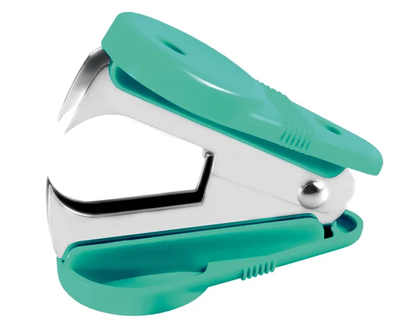 Rozszywacz w obudowie z tworzywa sztucznego w kolorze zielonym, części mechaniczne metalowe. Dopasowany do zszywek: 10, 24/6, 24/8, 26/6, 26/8. Opakowanie: blister