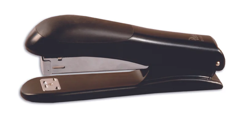 Zszywacz w czarnej obudowie z tworzywa sztucznego, części mechaniczne metalowe. Zszywanie zamknięte i otwarte. Dostosowany do zszywek o rozmiarach 24/6 - 26/6 mm. Zszywa do 25 kartek. Głębokość wsuwania kartek: 50 mm. Pojemność magazynka: 150 zszywek. Opakowanie: pudełko