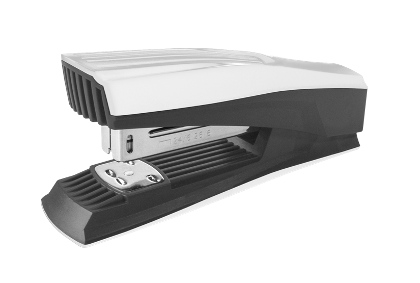 Zszywacz w ciemnoszarej obudowie z tworzywa sztucznego, części mechaniczne metalowe. Zszywanie otwarte/zamknięte. Dostosowany do zszywek o rozmiarze 24/6-26/6 mm. Zszywa do 20 kartek (70 g/m2). Głębokość wsuwania kartek: 54 mm. Pojemność magazynka: 100 zszywek. Opakowanie: pudełko PP
