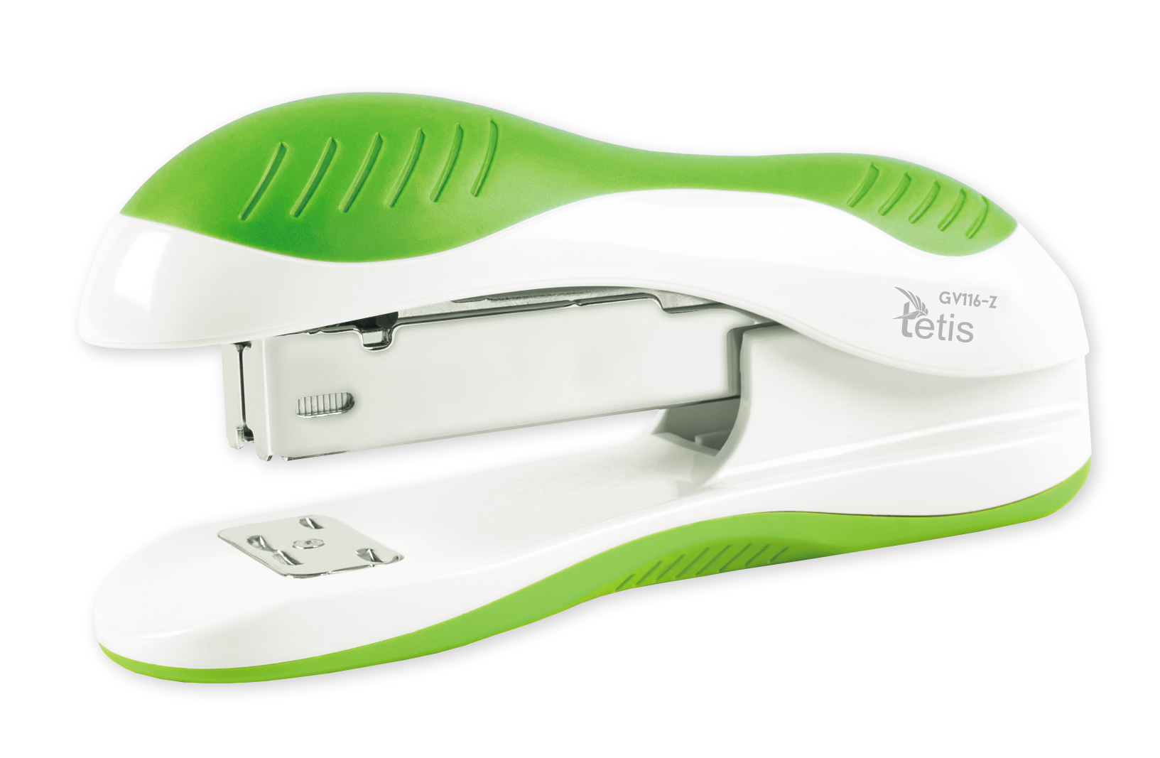 Zszywacz w zielonej obudowie z tworzywa sztucznego, części mechaniczne metalowe. Zszywanie otwarte/zamknięte. Dostosowany do zszywek: 24/6-26/6 mm. Zszywa 25 kartek. Głębokość wsuwania kartek: 50 mm. pojemność magazynka 100 zszywek. Opakowanie: pudełko