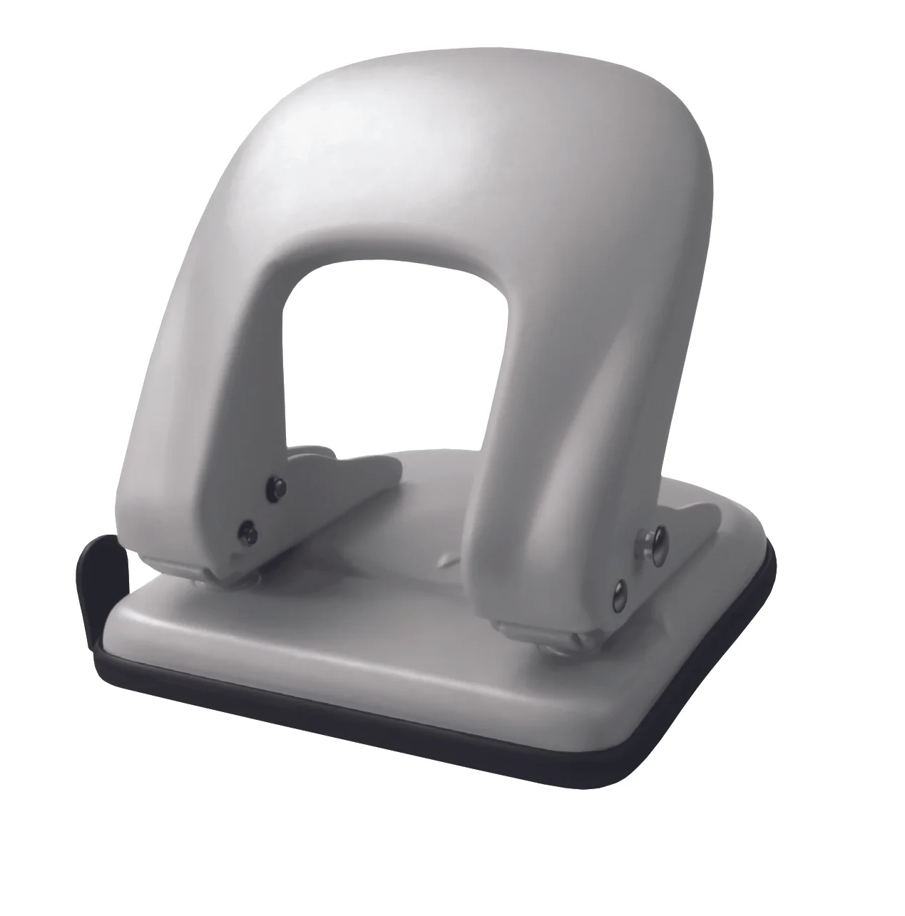 Metalowy dziurkacz biurowy w szarej, matowej obudowie. Posiada blokadę dźwigni, wskaźnik środka strony i ogranicznik formatu. Dziurkuje do 35 arkuszy. Opakowanie: pudełko.