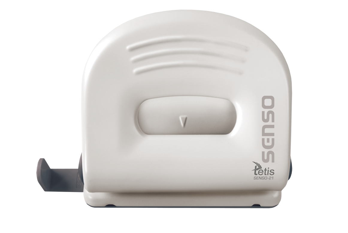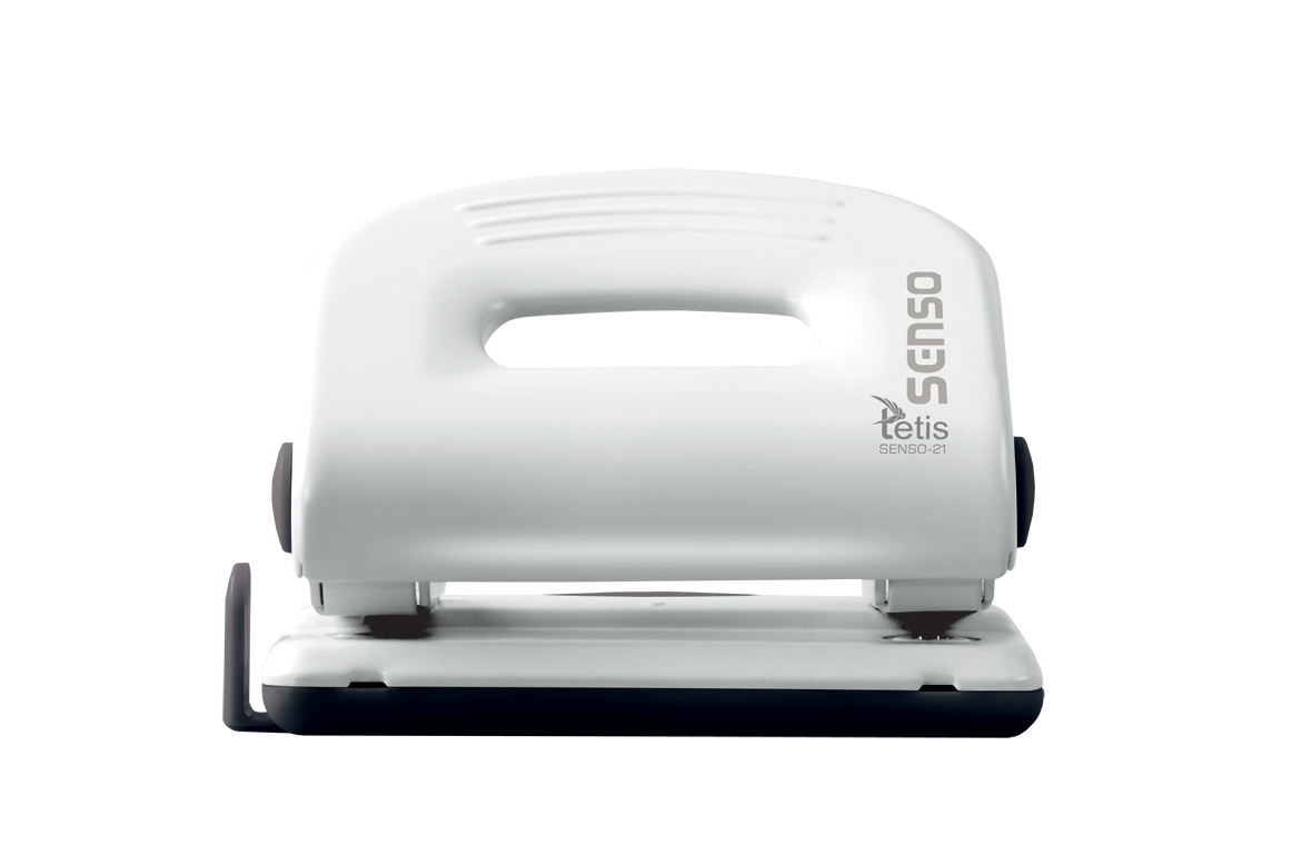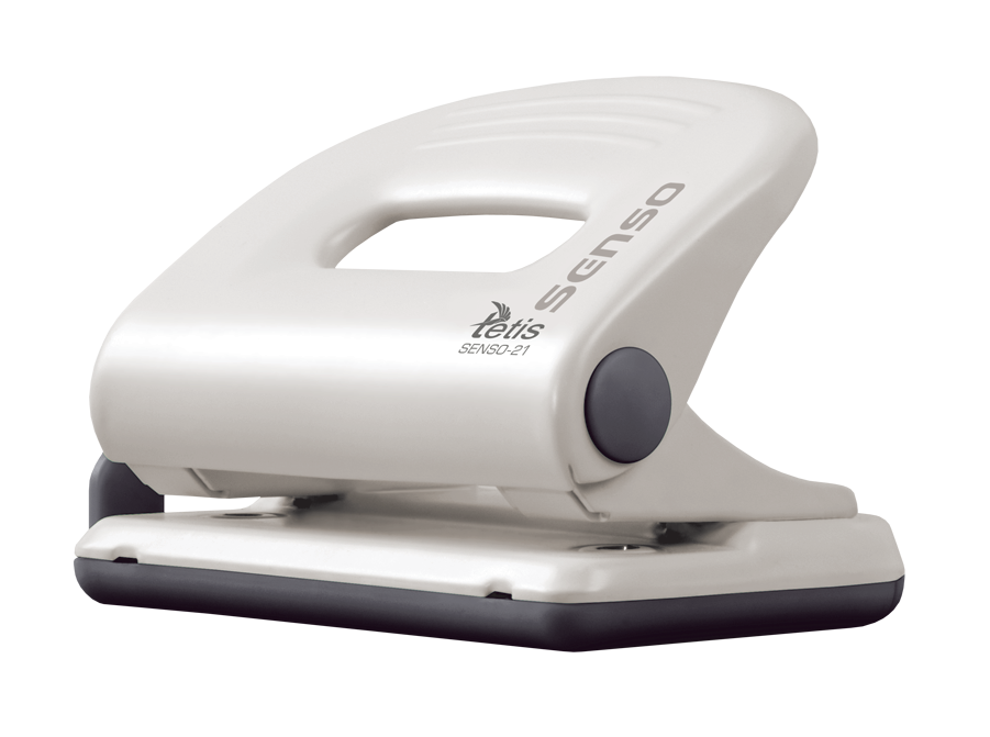 Metalowy dziurkacz biurowy z wykończeniami z tworzywa sztucznego w kolorze biało-czarnym. Posiada wskaźnik środka strony i ogranicznik formatu. Dziurkuje do 25 kartek. Nowatorskie rozwiązanie umożliwia usunięcie konfetti bez zdejmowania całego spodu. Opakowanie: pudełko. 5 lat gwarancji.