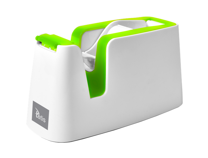 Podajnik do taśmy klejącej o szerokości do 18 mm. Solidna i trwała obudowa, ostre ostrze pozwala na łatwe odcinanie taśmy. Antypoślizgowy spód. Opakowanie: pudełko PP.