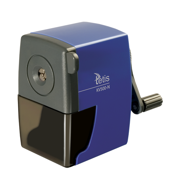 Poręczna w użyciu temperówka na korbkę mocowana do blatu za pomocą metalowego uchwytu. Bardzo dobrze ostrzy ołówki i kredki o średnicy do 8 mm. Wyposażona w cylindryczne ostrze, pojemny, wysuwany pojemnik na ścinki oraz antypoślizgowy spód.