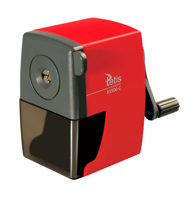 Poręczna w użyciu temperówka na korbkę mocowana do blatu za pomocą metalowego uchwytu. Bardzo dobrze ostrzy ołówki i kredki o średnicy do 8 mm. Wyposażona w cylindryczne ostrze, pojemny, wysuwany pojemnik na ścinki oraz antypoślizgowy spód.